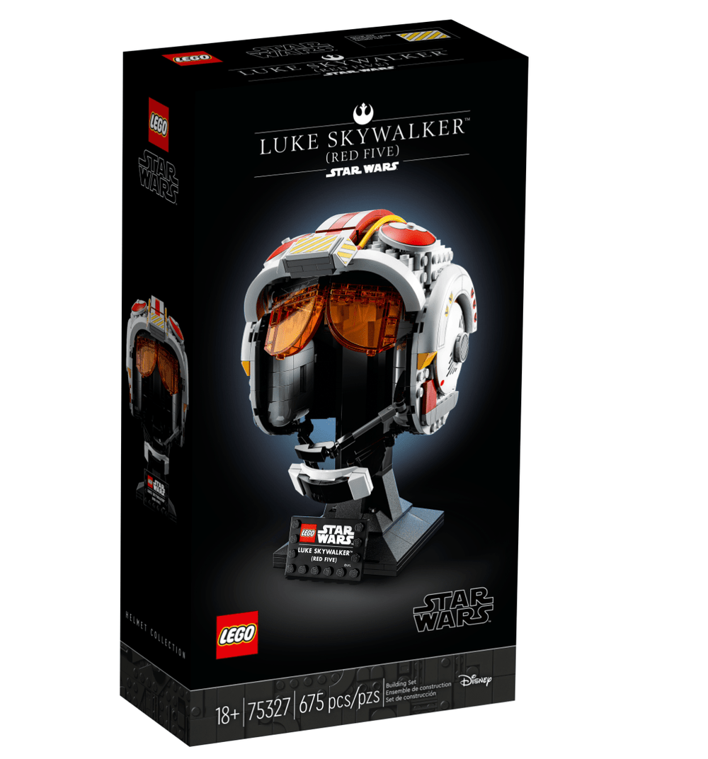 Feel the power of your creative Force as you build the collectible Luke Skywalker (Red Five) Helmet (75327). This buildable model of Luke’s iconic pilot headgear is the first-ever hero helmet or open helmet in the LEGO® Star Wars™ collection. Channel your inner Jedi to recreate authentic details, including a brick-built microphone and interior padding, plus translucent red visor elements. Add the integrated stand with nameplate to complete a striking display piece.