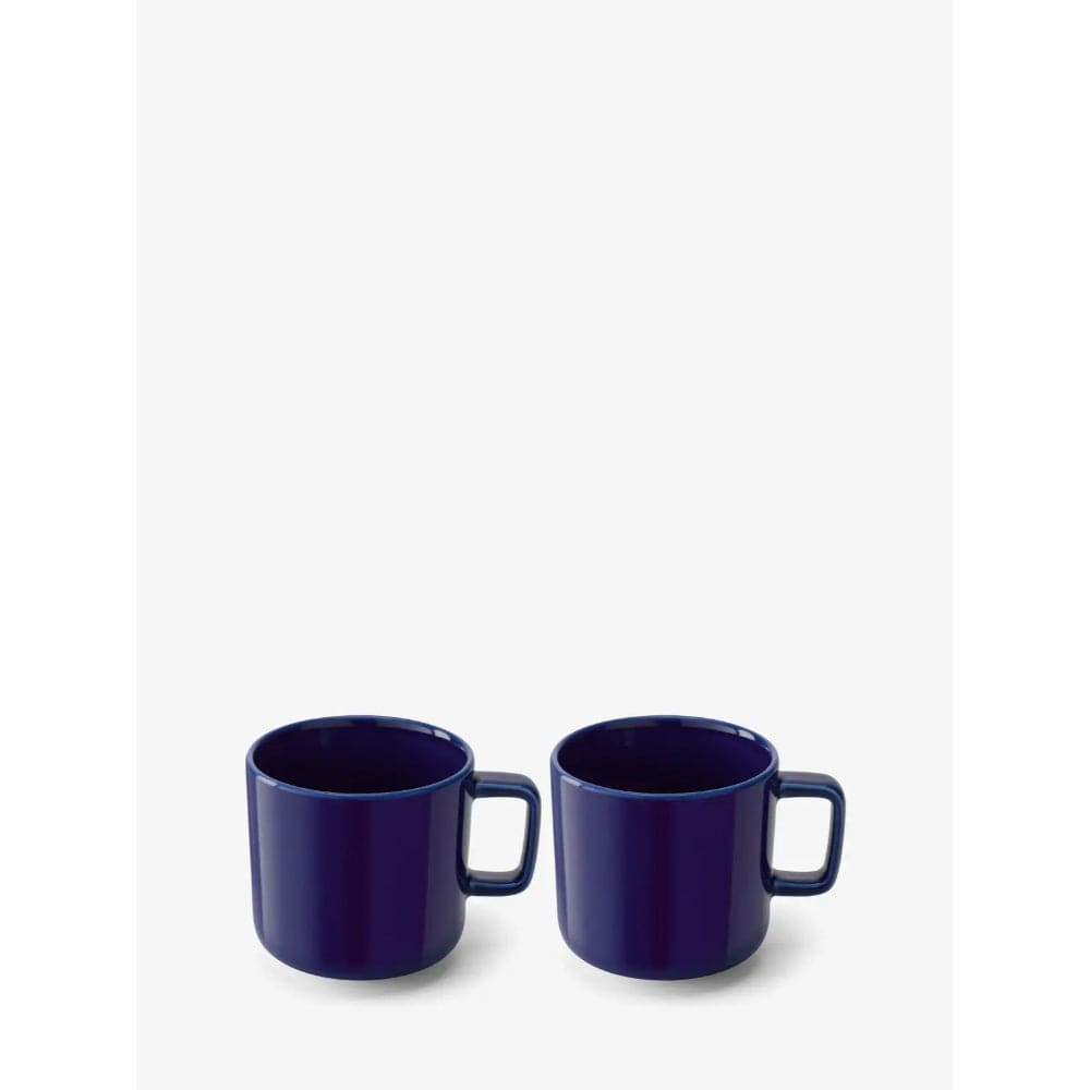 A set of two porcelain tea/coffee cups with a tapered form and angular handle. Versatile and contemporary tableware designed for different environments and occasions. Made from vitrified porcelain that is dishwasher and microwave safe.