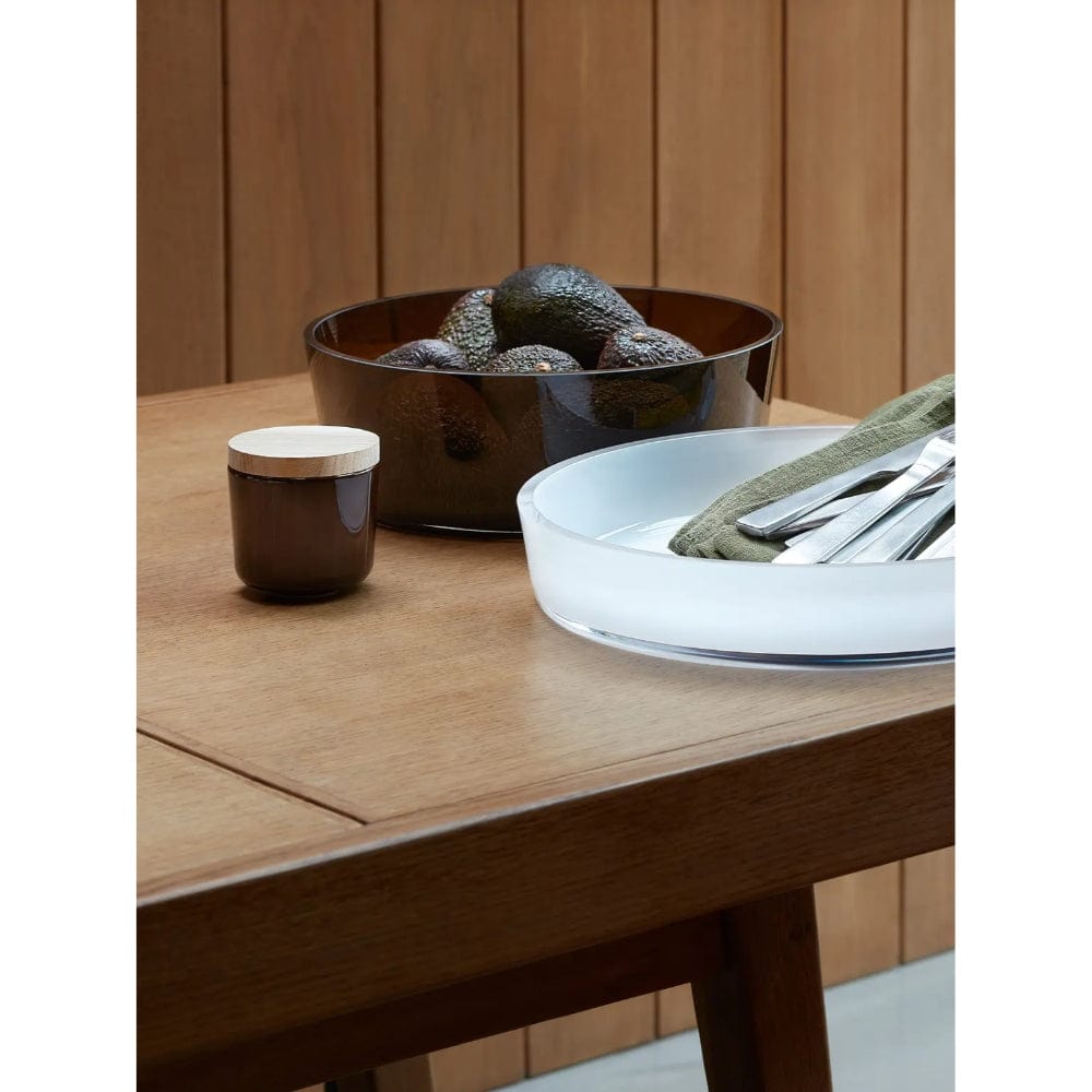 This 30cm LSA Collective Glass Bowl in Mocha features a mouth-blown design with a tapered shape and flat polished rim. Its thick walls make it sturdy and ideal for serving salads or displaying fruit. Its versatile, contemporary style suits various cuisines and occasions.
