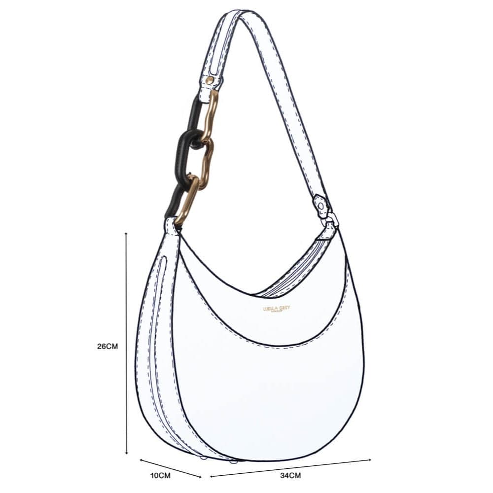 Thelma is a scoop hobo designed for style and functionality. Introducing Thelma, a hobo saddle version of smaller style Hester. Thelma is a bag that oozes refined, sophisticated style, and features the new Tooting Half-Covered Chain Link detail for a flash of golden glamour. Thelma has a mix of material textures and tactile interest with the molten metalzip fastening. This beautiful bag scoops under your arm for a comfortable, yet super chic carry.