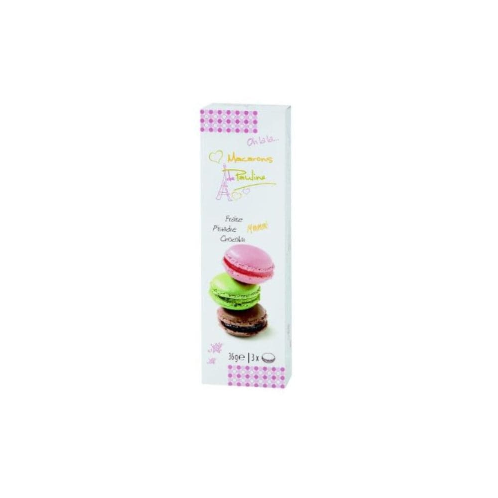 Macarons De Pauline Assorted are presented in a box of 3, the flavours are pistachio, chocolate and strawberry. The Classic delicacy of today, with their delicate macaron shells engulfing an exquisite creamy almond paste. Perfect on their own or enjoy with a nice freshly made espresso.