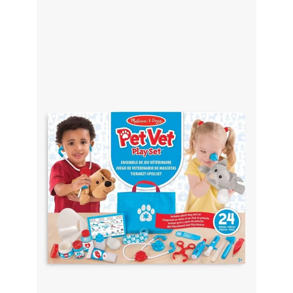 The Melissa & Doug Role Play Pet Vet Play Set lets kids care for two plush pets with fun vet tools. Perfect for ages three and up, it includes everything needed for pretend check-ups and stores neatly in a tote bag for easy play anywhere.