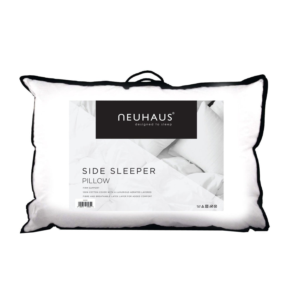 The Neuhaus Side Sleeper Pillow provides firm support for side sleepers. The non-allergenic layered spiral fibre filling offers fullness and support to the head and neck while you sleep. The Side Sleeper Pillows 100% cotton cover offers natural breathability so that you can get a restful nights sleep.