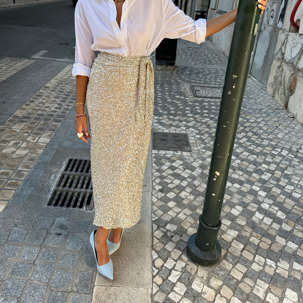 From festival season to bridesmaid chic, sparkle is always a good option. Lathered in silver sequins that catch the sunlight like a disco ball - in our classic Jaspre shape, with a completely adjustable and multiwear waist tie. Style down with a crisp white tank, or go bold in full sequin. Sequins lined with a weighty satin that feels like it slinks over your figure and ensures a comfortable and non-itchy feel.