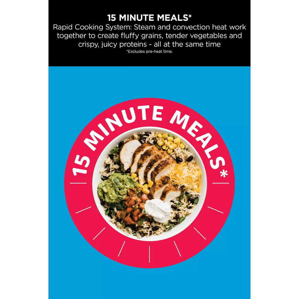 Rapid Cooker Mode combines steam with air frying to create fluffy grains or al dente pasta, tender vegetables and crispy mains – all at once.