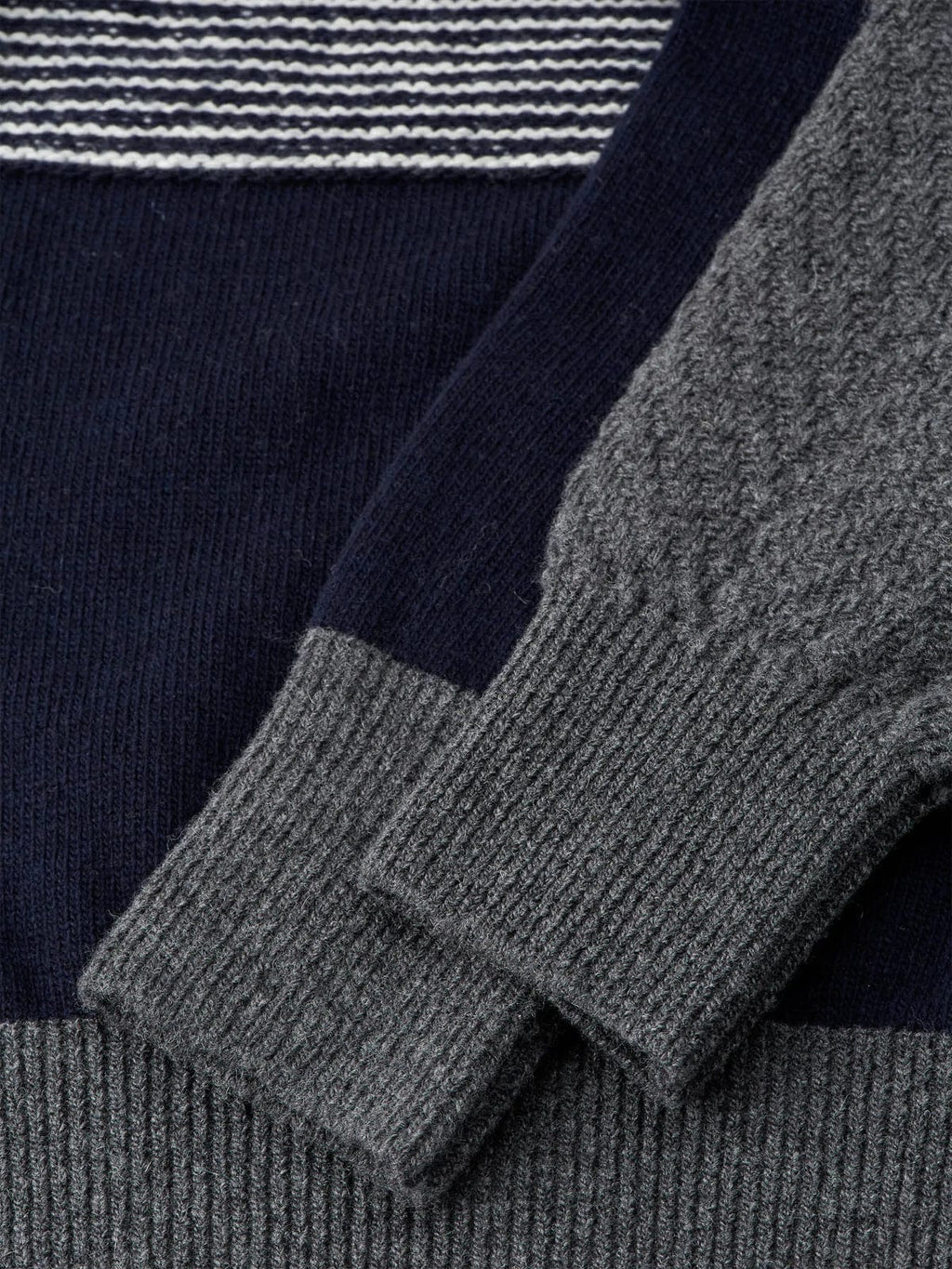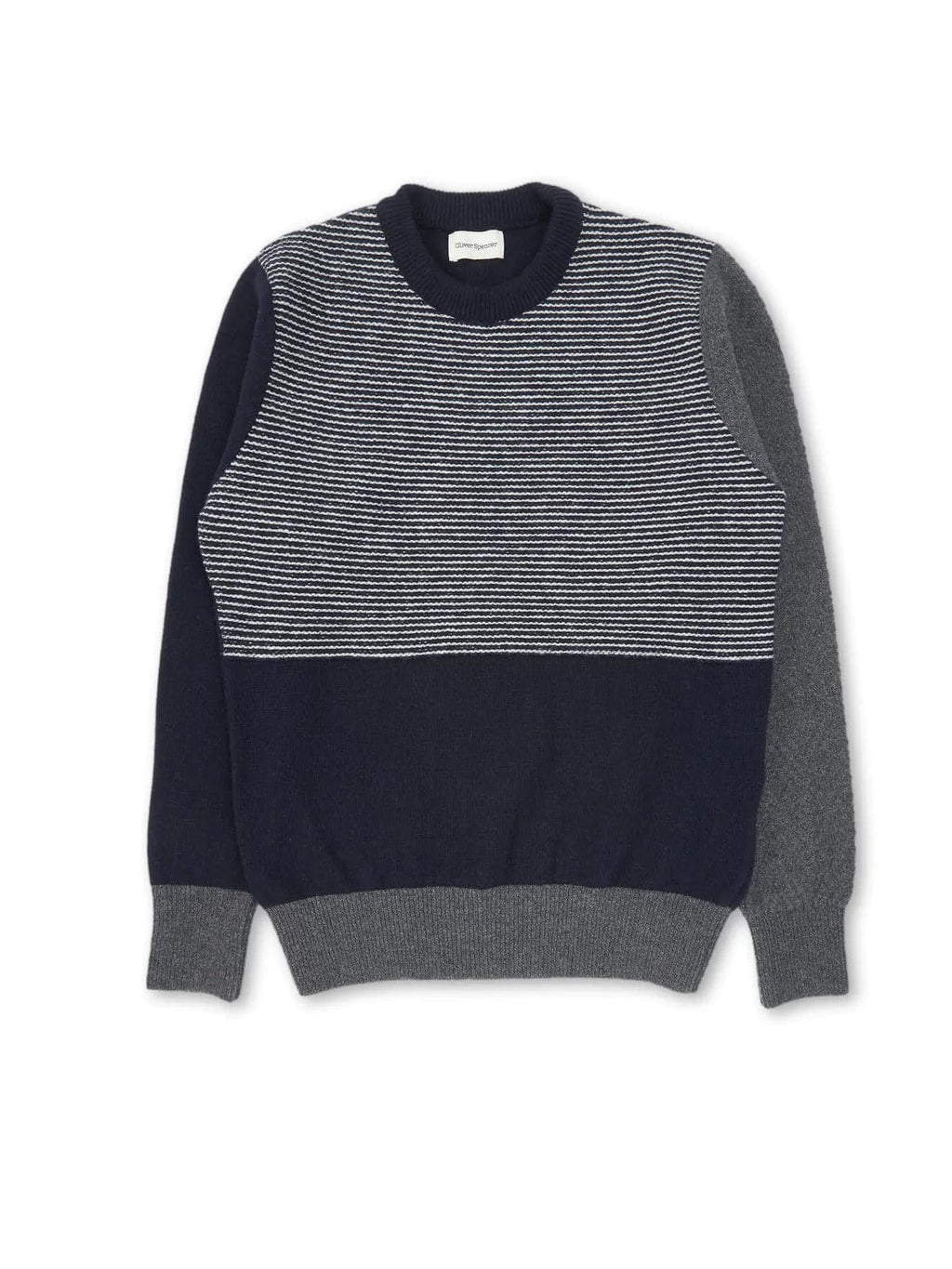 Our perennial Blenheim jumper is one of our most popular garments, thanks to the classic silhouette and extrafine wool composition. This mixed panelled knit offers subtle textural contrast for some understated fun.