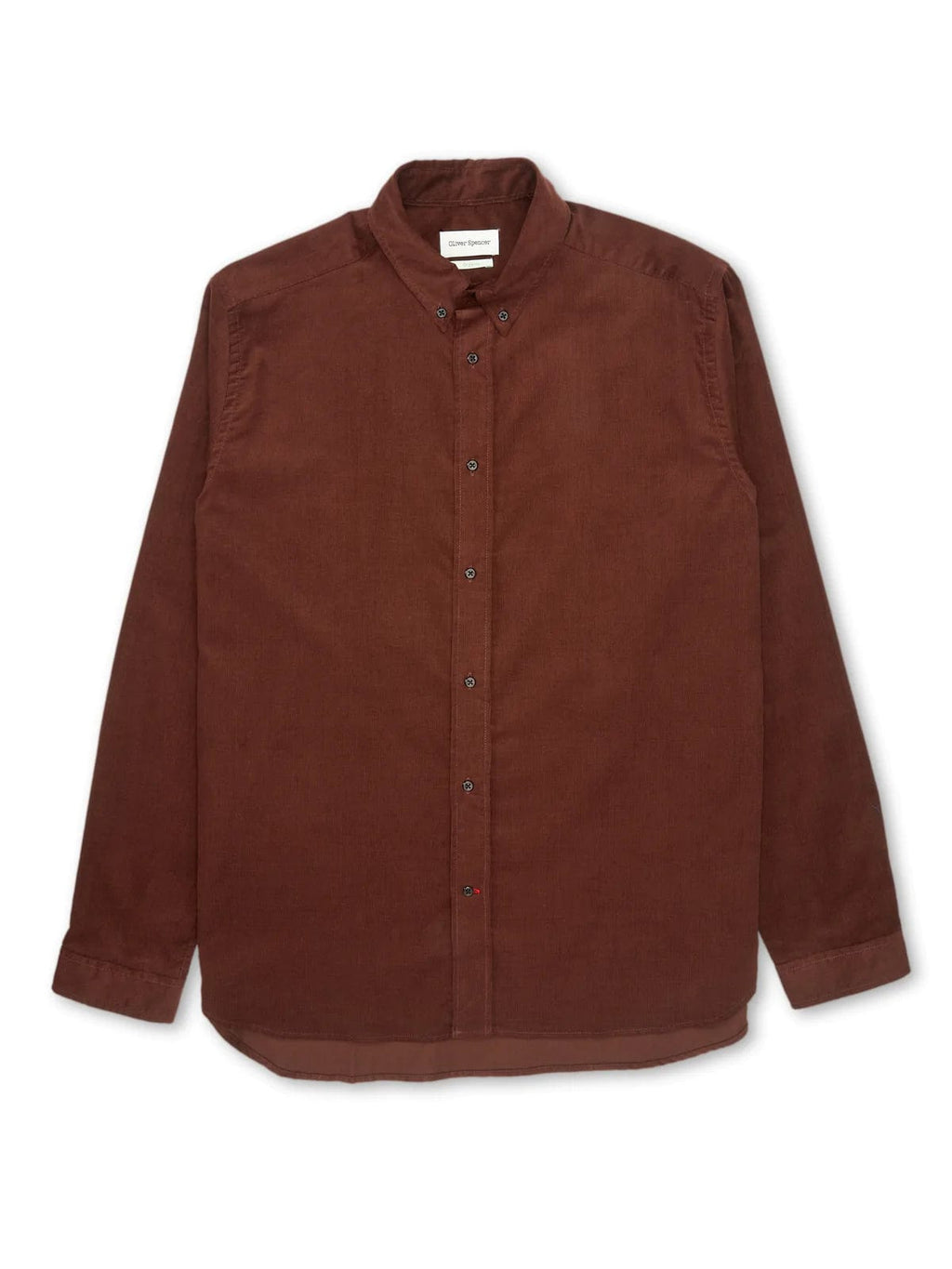 The Brook shirt is Oli's regular classic button-down collar shirt with a wide front placket and one-button cuff. Inspired by the original button-down military shirts of the last century, the Brook features a soft collar construction making it ideal for casualwear. This version is cut in 100% organic cotton corduroy with a micro wale.