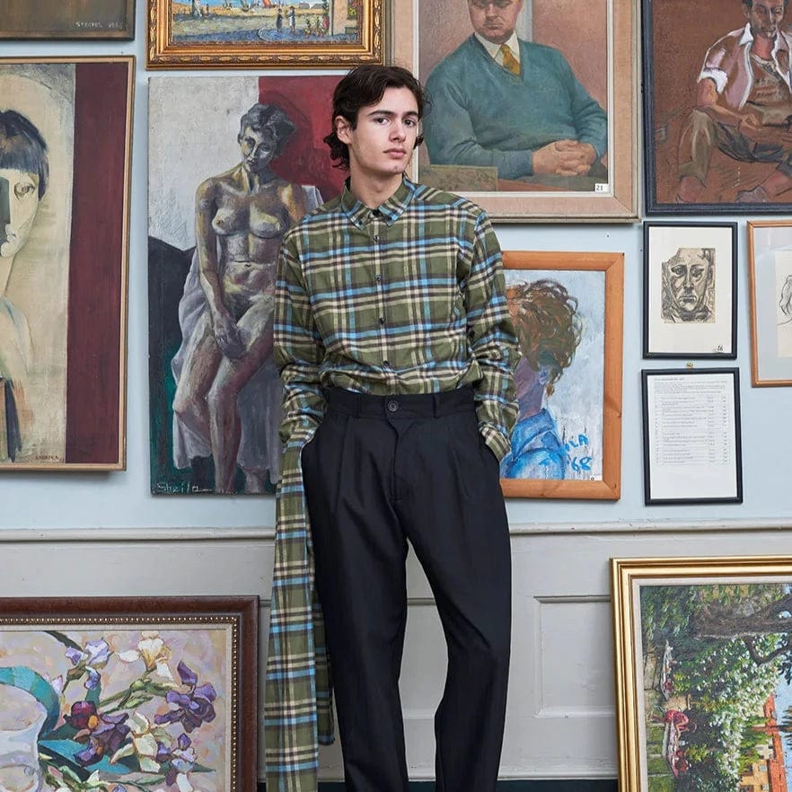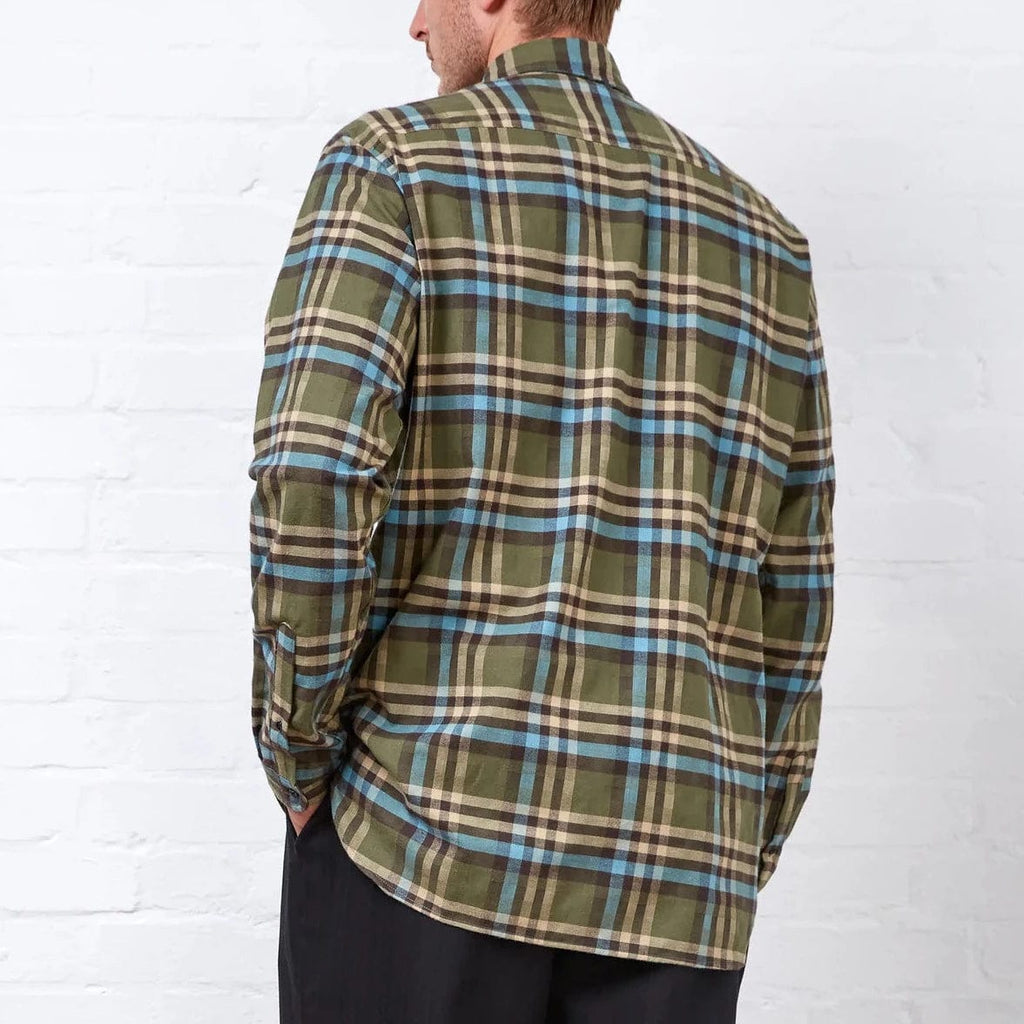 The Brook shirt is Oli's regular classic button-down collar shirt with a wide front placket and one-button cuff. Inspired by the original button-down military shirts of the last century, the Brook features a soft collar construction making it ideal for casualwear. This version is cut in a soft midweight brushed 100% organic cotton.