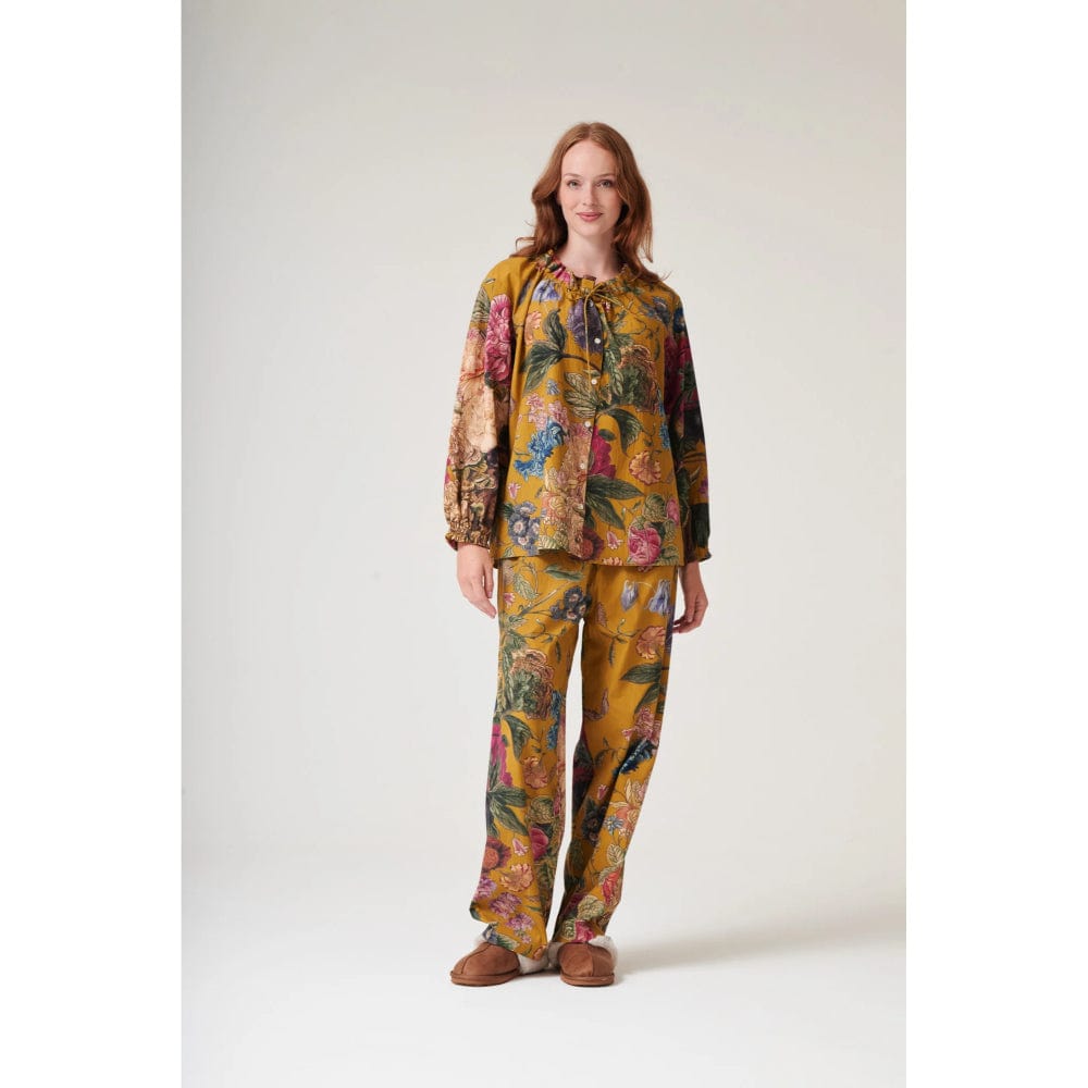 Our Poplin Pyjamas are the quintessential way to get your beauty sleep in style! Featuring a full-length, wide leg trouser with an elasticised waistline for maximum comfort. The long sleeve top has elasticated cuffs and ruffled neckline with an adjustable tie.