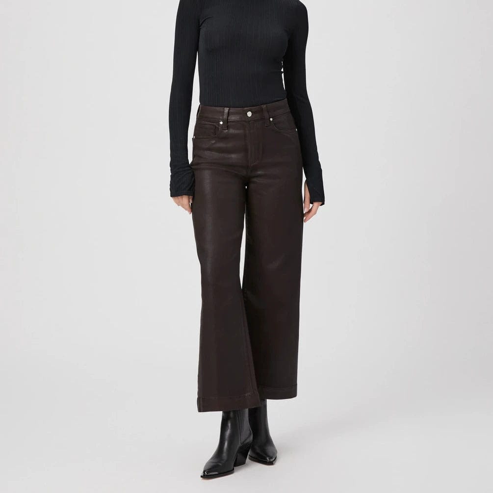 Anessa is our high-waisted wide leg with an easy, relaxed fit and an ankle length silhouette. This super flattering style has a leather-like look, but doesn't sacrifice comfort. Cut from our coated TRANSCEND denim in a rich coffee brown shade, this style is luxuriously soft with plenty of stretch and recovery to give it a flawless fit from morning to moonlight.