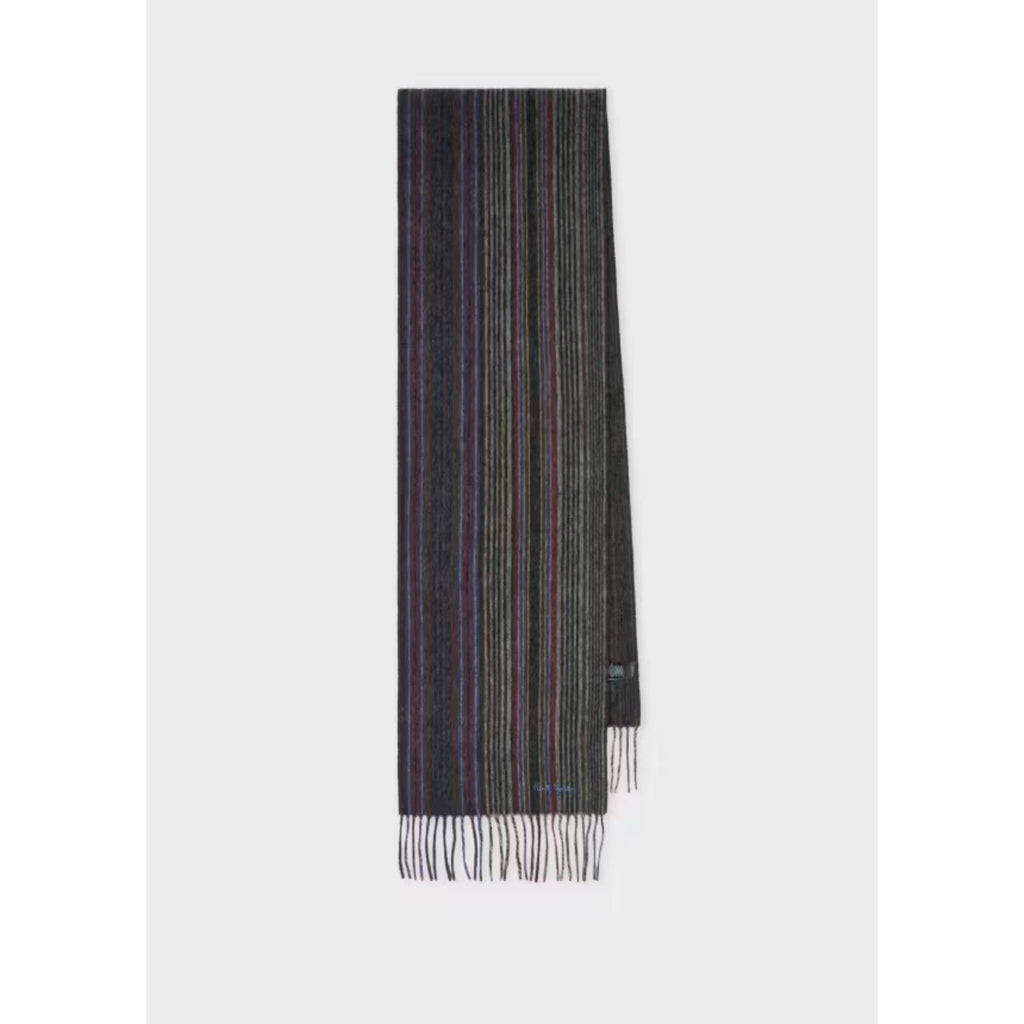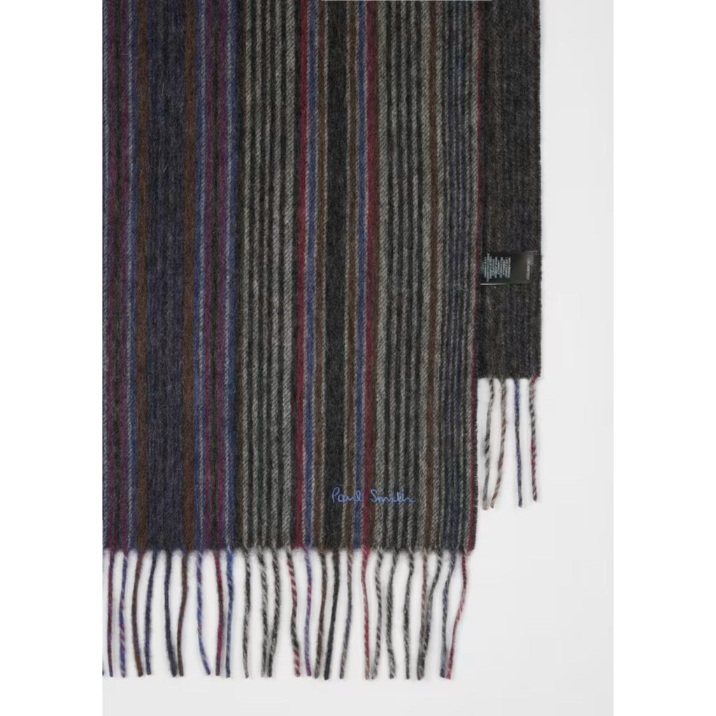Made from a soft lambswool, this grey scarf features a tonal stripe design and subtle signature embroidery detailing. An ideal accessory to add a pop of colour to your look, this cosy scarf is finished with long frayed edges.