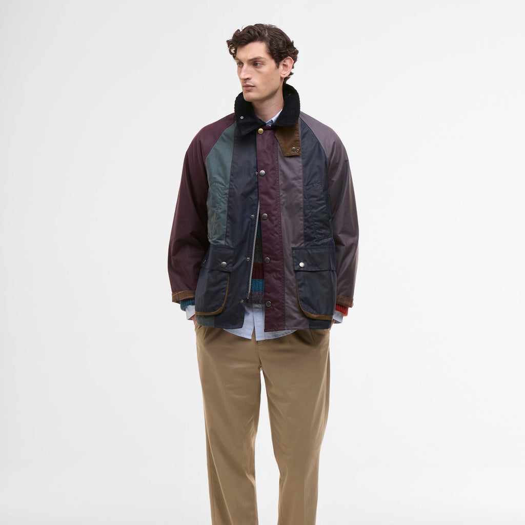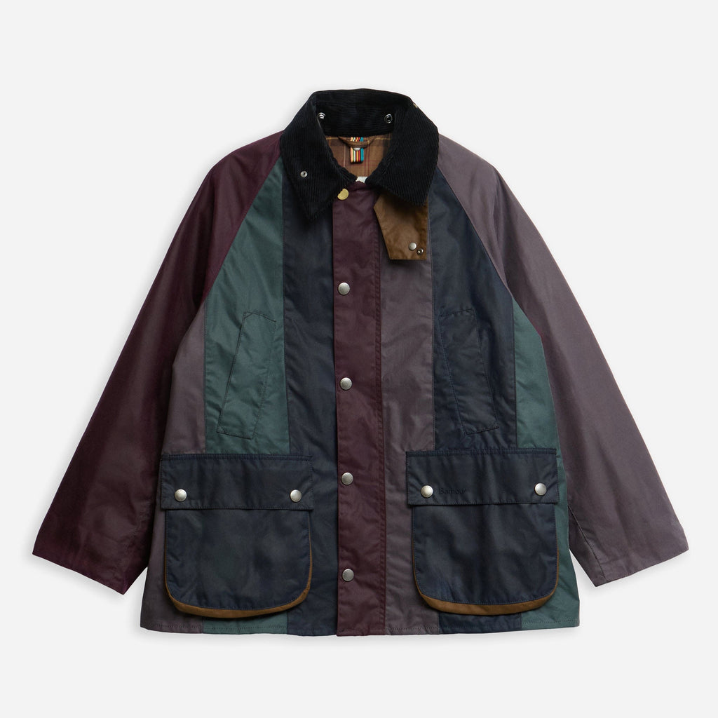 Discover the perfect blend of countryside heritage and playful flair with the Paul Smith loves Barbour Oversized Bedale Striped Waxed Jacket. Crafted from contrasting panels of 6oz waxed cotton inspired by Paul Smith's iconic stripes, this statement piece is an inventive reimagination of Barbour’s 1980 Bedale jacket.