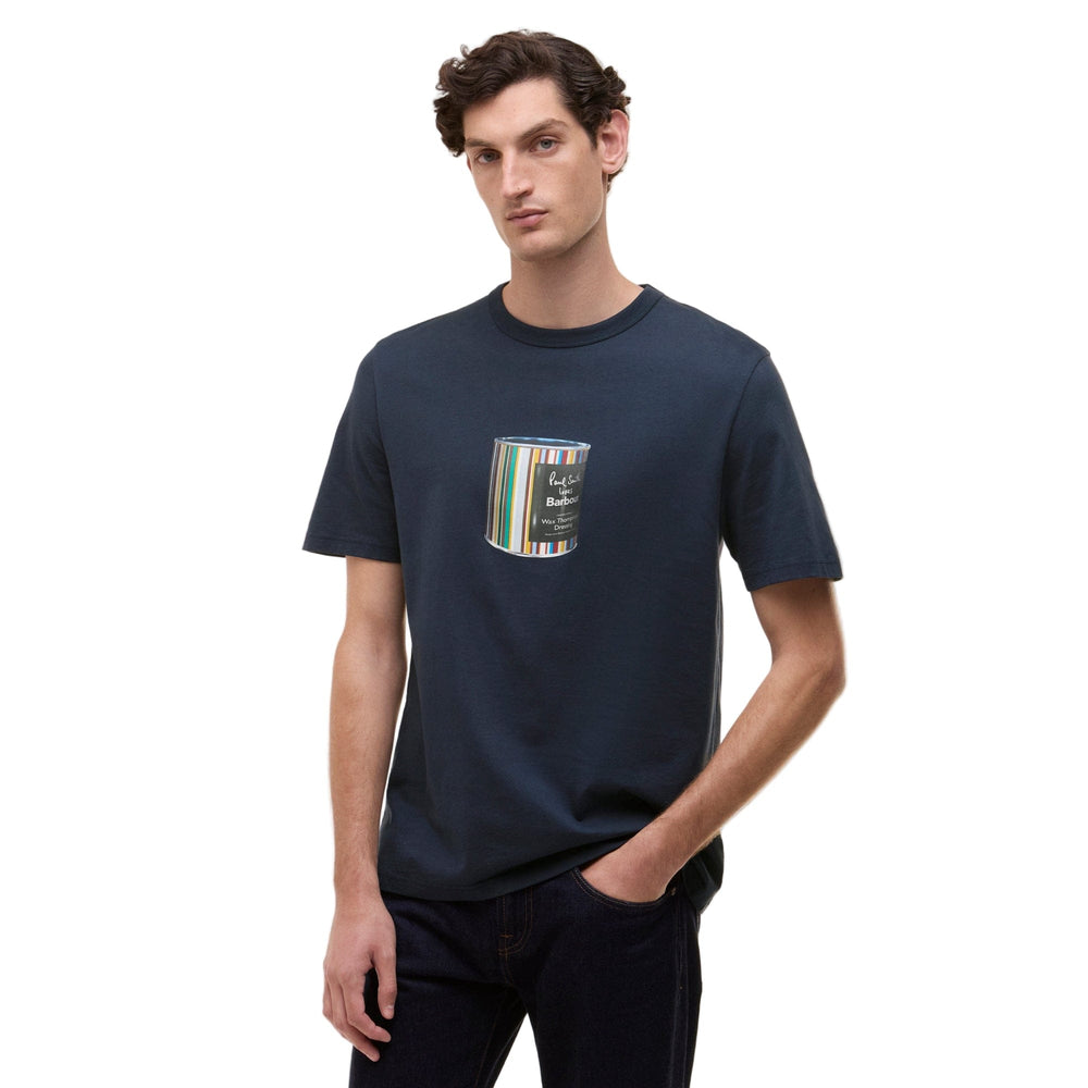 Barbour and Paul Smith have joined forces to craft something truly special. The wax tin T-shirt is a premium cotton short-sleeve masterpiece that brings together Paul Smith’s quirky British charm and Barbour’s timeless craftsmanship. Featuring a bold Paul Smith take on the Barbour wax tin to the centre-front, it’s perfect for those who appreciate a nod to heritage with a playful twist.