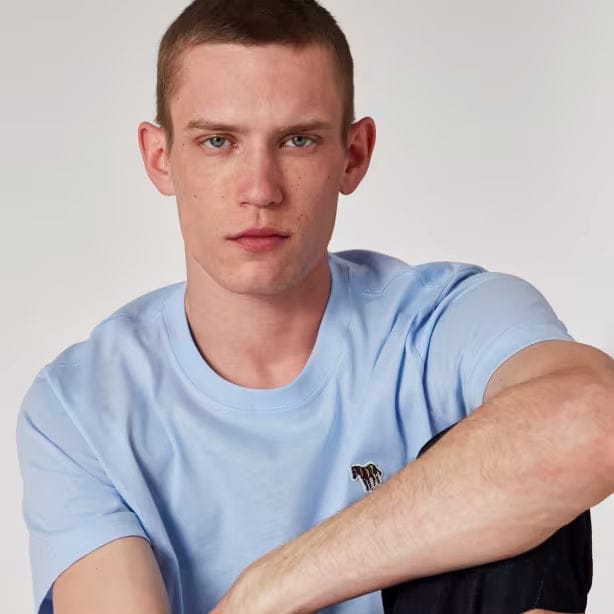 Paul Smith Organic Cotton Zebra Logo Regular T-Shirt Pale Blue