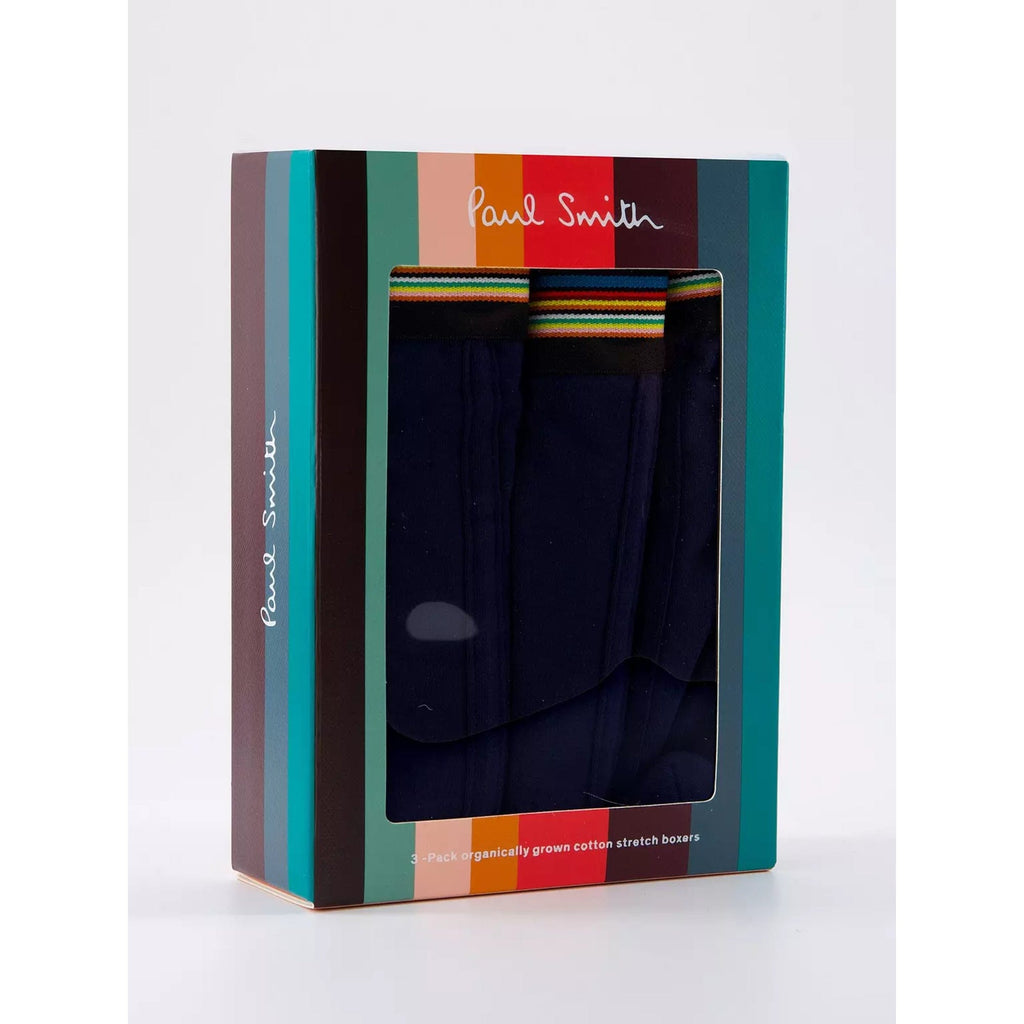 Paul Smith Underwear 3 Pack Of Trunks In Navy, featuring the signature striped design in along the elasticated waistband.