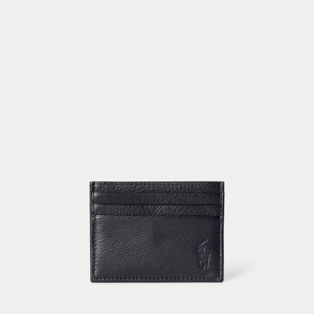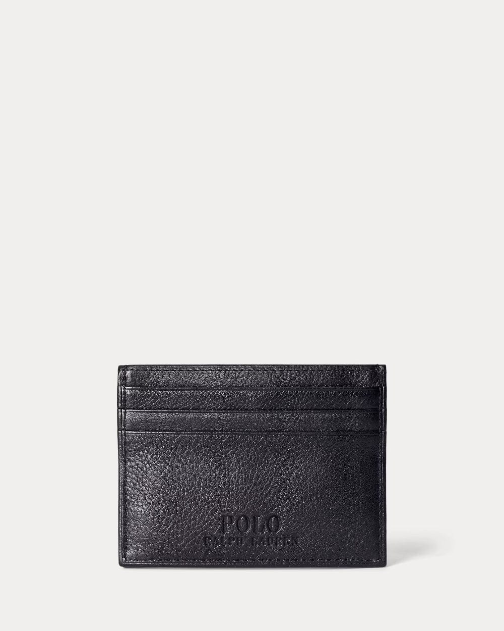 This pebbled leather card case unites a slim, modern silhouette with subtle logo detailing.