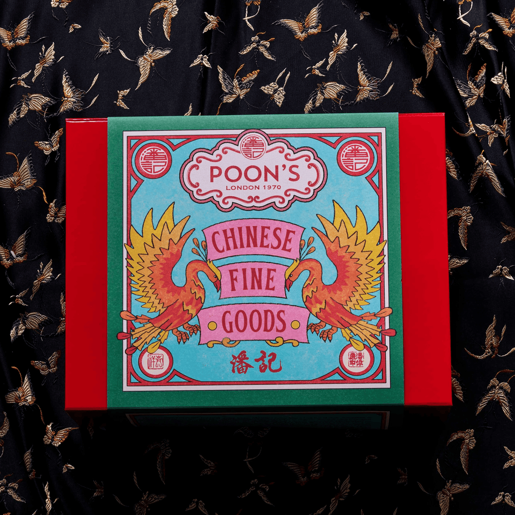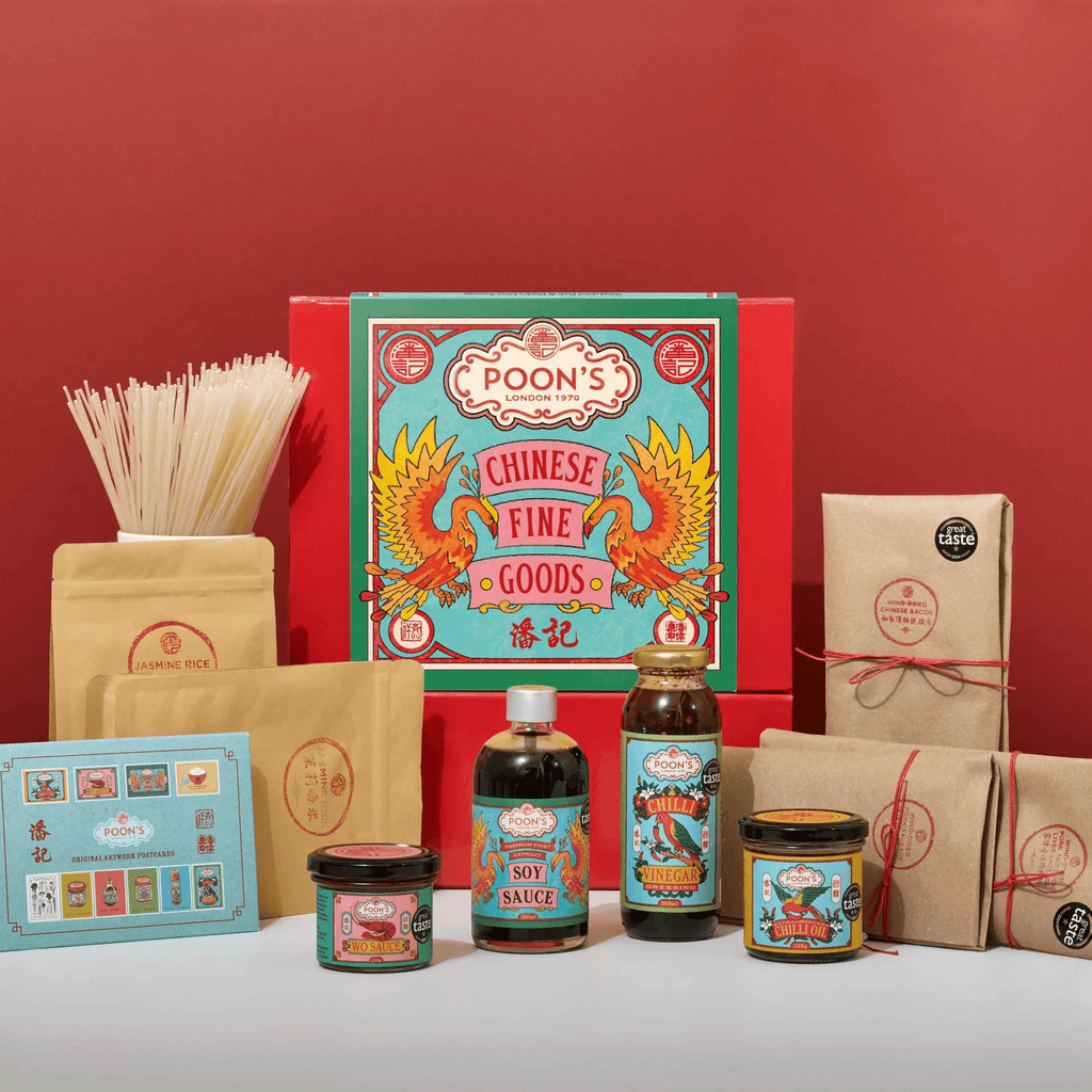 Our Heritage Hamper is presented in a striking reusable red box, featuring Poon’s signature artwork, and comprises all four of our Signature Chinese sauces, all three of our wind-dried meat products made to the same family recipe since 1970, Jasmine Rice, Rice Noodles, and a set of 10 beautifully printed Poon’s original artwork postcards including original artwork from Phoebe Rutherford.