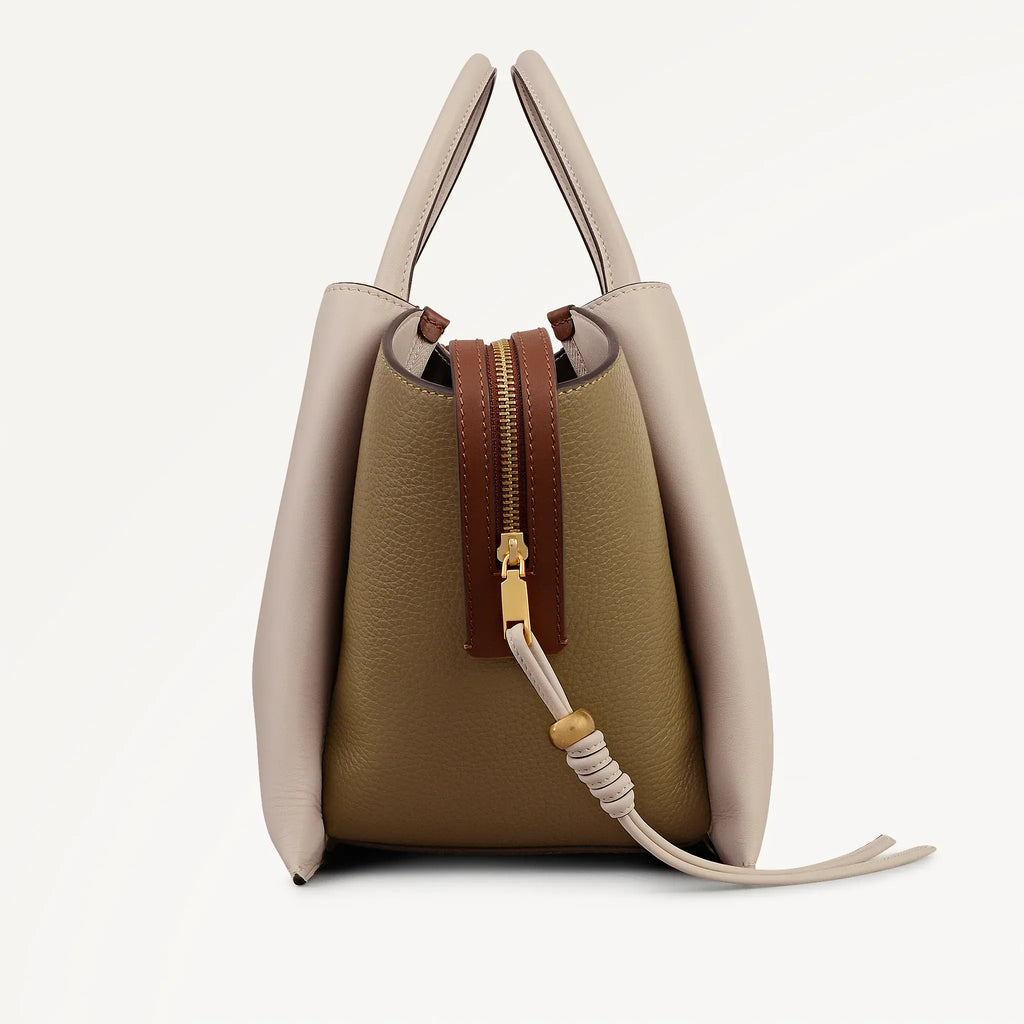 The Romilly pays homage to an archived Radley handbag, one with the same soft folded construction and three interior compartments. Choose between its two personalities; leave the long zip pullers hanging loose for casual style or tuck them in to see it look poised and sophisticated.