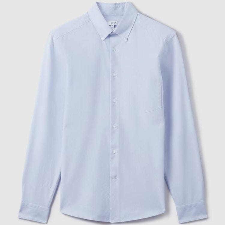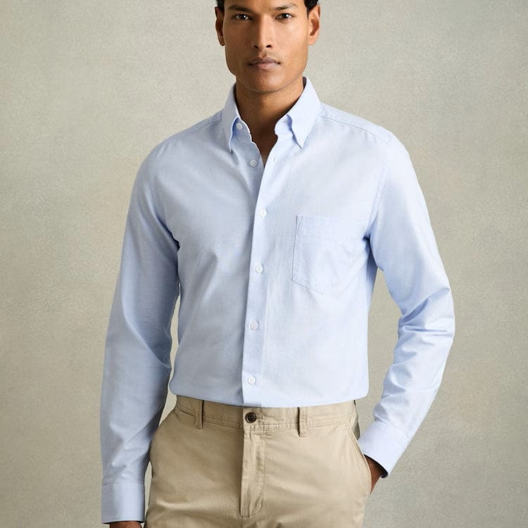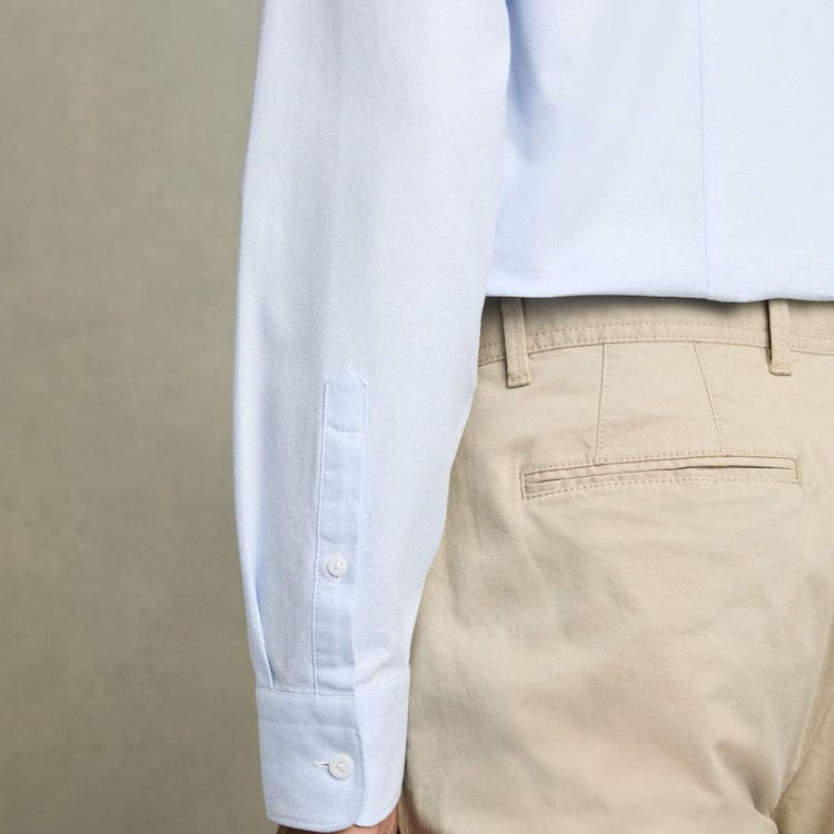 True to an Oxford Soft Blue shirt style, the soft blue Greenwich long-sleeve is crafted with two-ply cotton for durability and structure. Its slim fit shape is fastened with a button-front closure and a button-down collar.