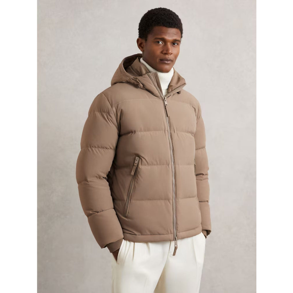 Defined by its quilted construction, The Light Camel Brown Reggie puffer jacket delivers warmth with a streamlined finish. A toggled hood and hem offer adjustable coverage, while a dual front zip and storm cuffs enhance its functional design.