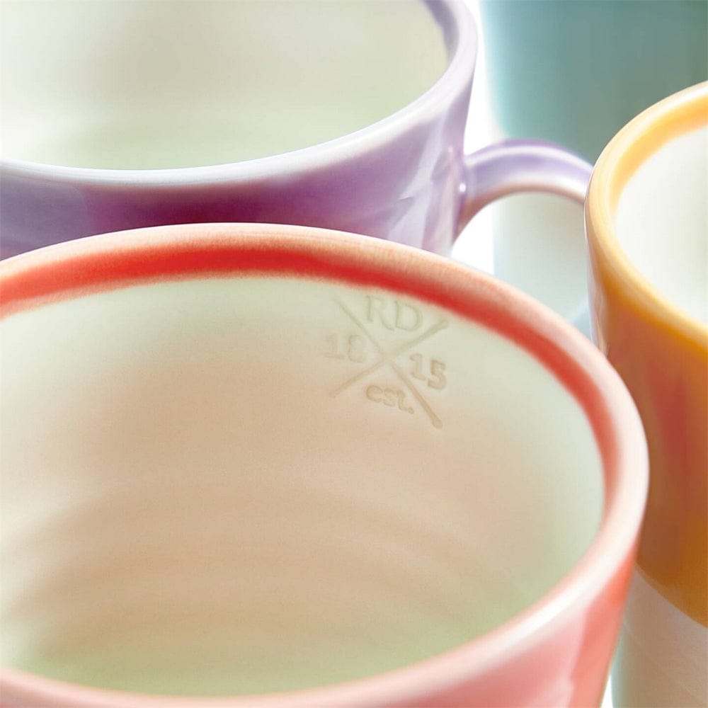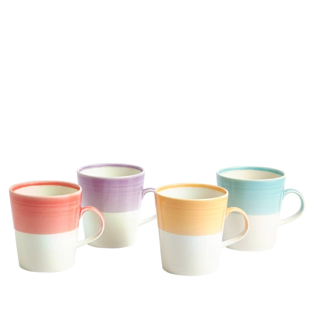 Each Royal Doulton Mug Grande 500ml in this set of four features a unique hand-dipped glaze design, ensuring no two are the same. The playful patterns beautifully highlight the vibrant 1815 Bright glazes, adding charm to your daily routine. Crafted from hard-wearing porcelain, these mugs are rigorously tested to resist chips, making them perfect for everyday use. Dishwasher and microwave safe, they combine convenience with style. Thoughtfully packaged with sustainability in mind, this set invites you to mix and match within the 1815 family for a personalized collection.