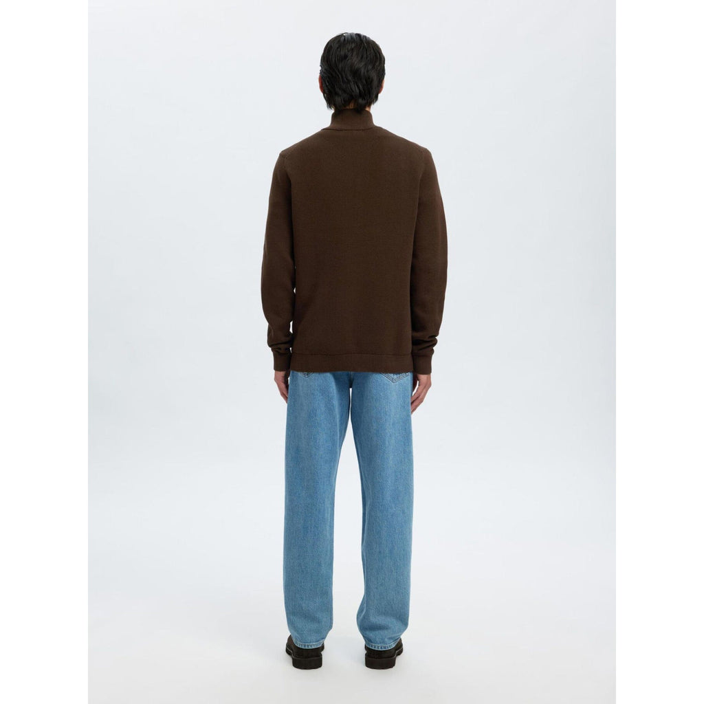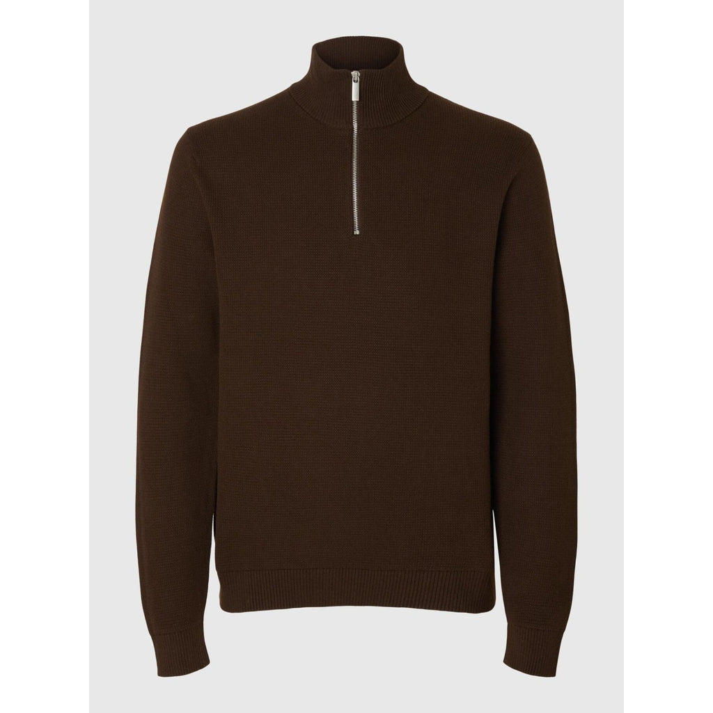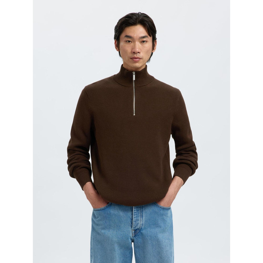 Selected Dane Knit Structure Half Zip Jumper In Demitasse