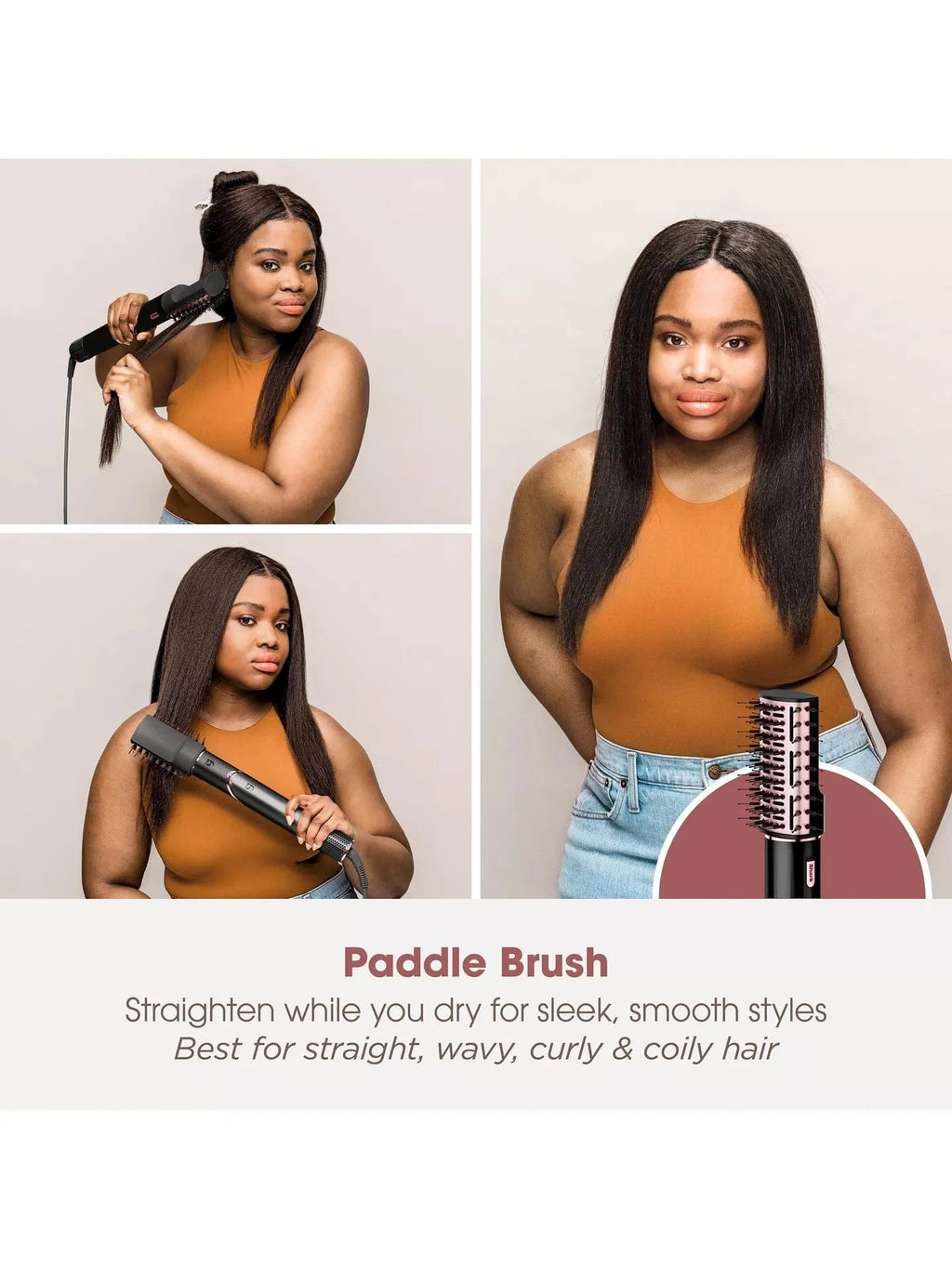 Straighten while you dry to speed up your routine. Spend less time styling, more time living. Smoothing boar & nylon bristles create added tension to straighten hair and add shine – perfect for sleek, straight styles. Best for straight, wavy, curly & coily hair.
