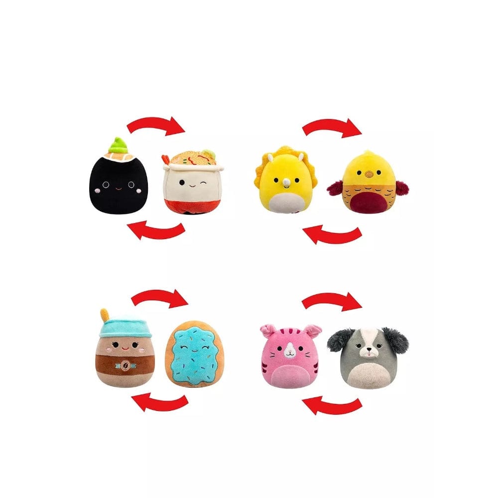Discover the magic of Squishmallows Flip-A-Mallows. The reversible plushes that flip between two adorable characters! These 5" ultra-squeezable companions feature irresistibly soft, high-quality material perfect for cuddling during movie nights, road trips, sleepovers, or everyday adventures. With a delightful variety of colourful characters and personalities, each Flip-A-Mallow brings joy and companionship to your Squishmallows Squad. Whether you're relaxing at home or on the go, these playful plushes are ready to become your new best friends!