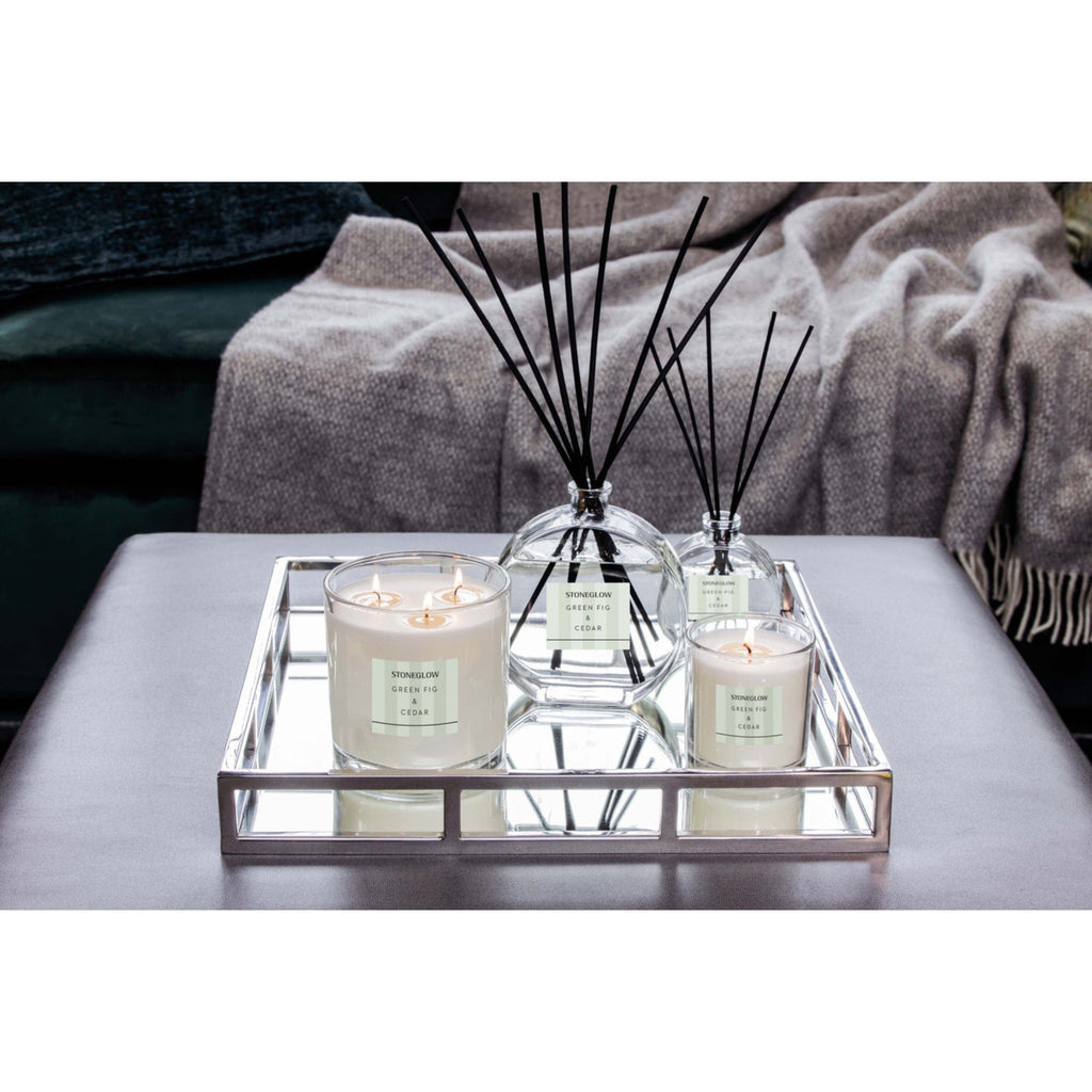 Experience a touch of luxury with our Modern Classics Green Fig & Cedar scented candle in a beautifully boxed tumbler. Embrace the delightful aroma of fresh figs, elevated by zesty notes of orange and grapefruit. The fragrance is brought to life with a rich base of woods and coconut milk, creating a warm and inviting ambiance.
