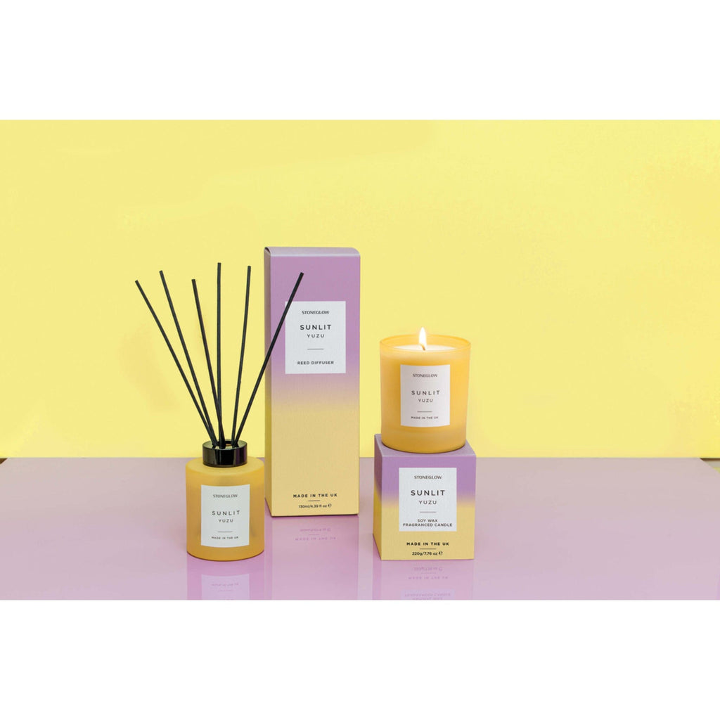 The Sol - Sunlit Yuzu Scented Reed Diffuser transforms any space into a vibrant oasis of refreshing aroma. This thoughtfully crafted diffuser brings the uplifting essence of sunlit groves right into your home, infusing your surroundings with the invigorating scent profile of yuzu, apple, and green mandarin. These fruity gourmand notes create an energizing ambiance that awakens the senses, instantly rejuvenating the atmosphere.