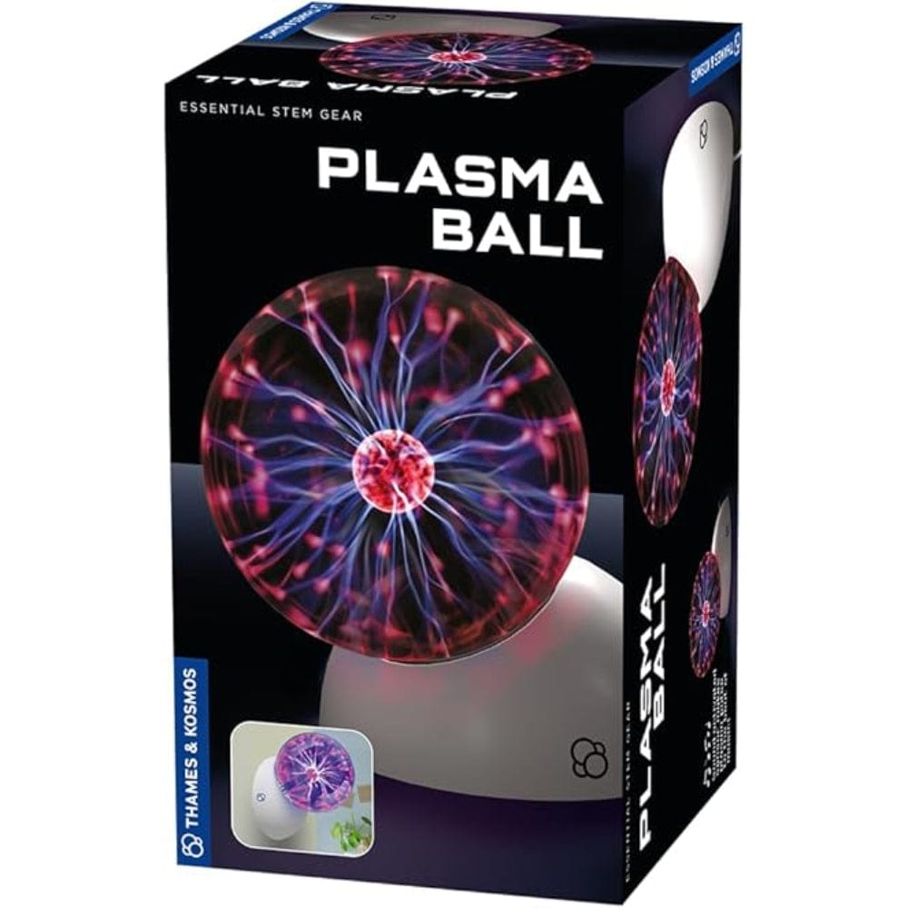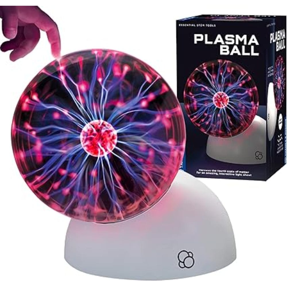 Plasma is the fourth state of matter. Neither solid, liquid, or gas, it is a super-charged ionized gas found in every star. The plasma ball works by sending a high-voltage, alternating current from a Tesla coil at its core, through a noble gas, to the inner surface of the glass sphere. Escaping electrons cause the inert gas inside the sphere to light up, creating the amazing effects. You can actually see electricity in the palm of your hand with this incredible device.