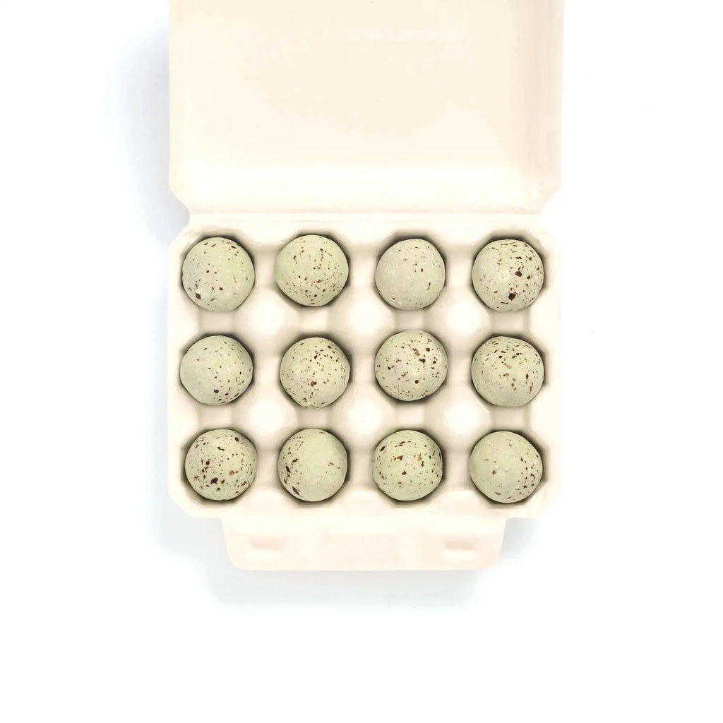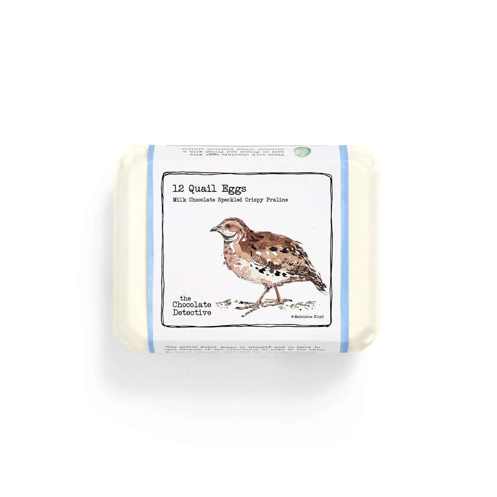 12 Chocolate Eggs filled with a fine hazelnut praline. The petite Quail keeps to himself and is hard to spot because of his reluctance to take to the skies.