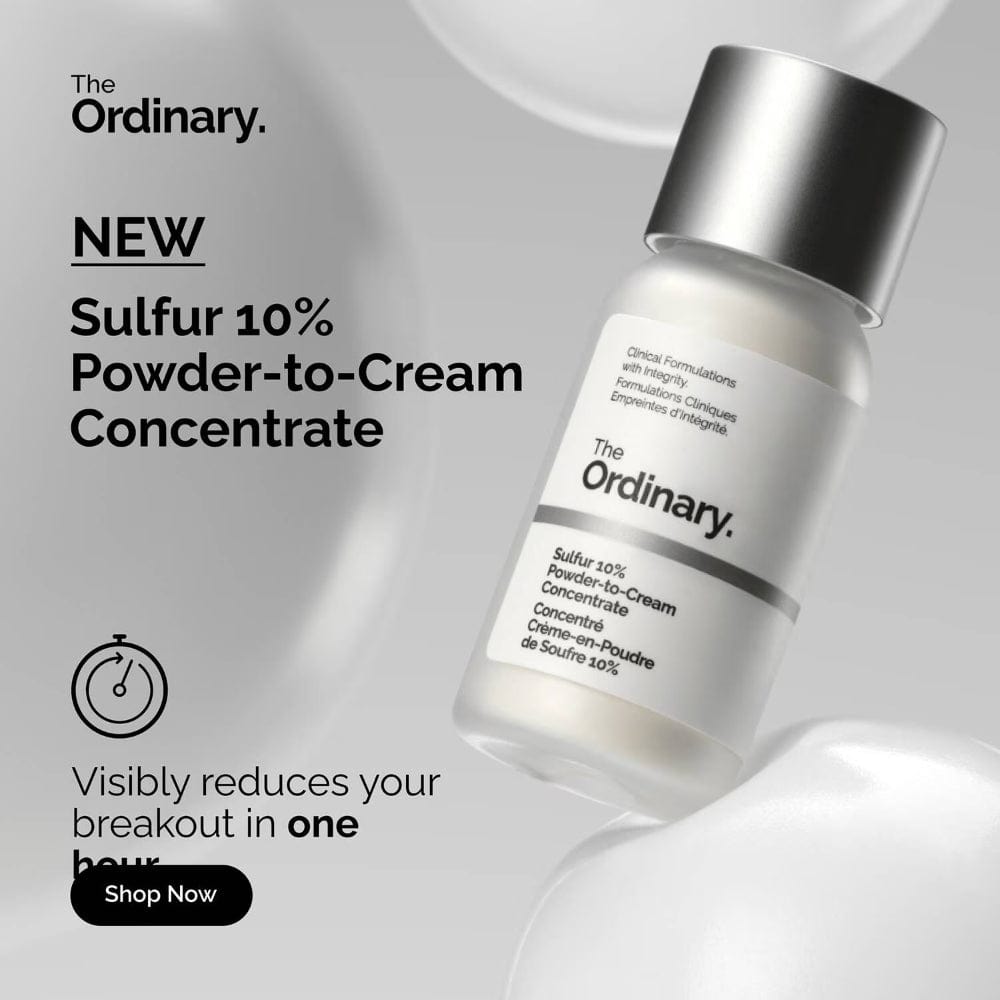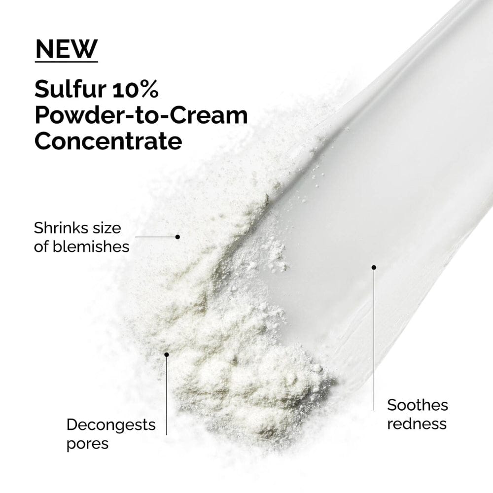 Sulfur 10% Powder-to-Cream Concentrate is a targeted blemish formulation that starts to help minimize the appearance of breakouts on application for visible results in under 1 hour. Formulated with 10% Sulfur to help soothe the look of localized blemishes. Sulfur offers a gentle approach to targeting the look of breakouts making it ideal for those with sensitive skin. Our formulation uses colloidal sulfur which has a smaller particle size to help provide effective delivery and minimize the visibility and odour of the ingredient.
