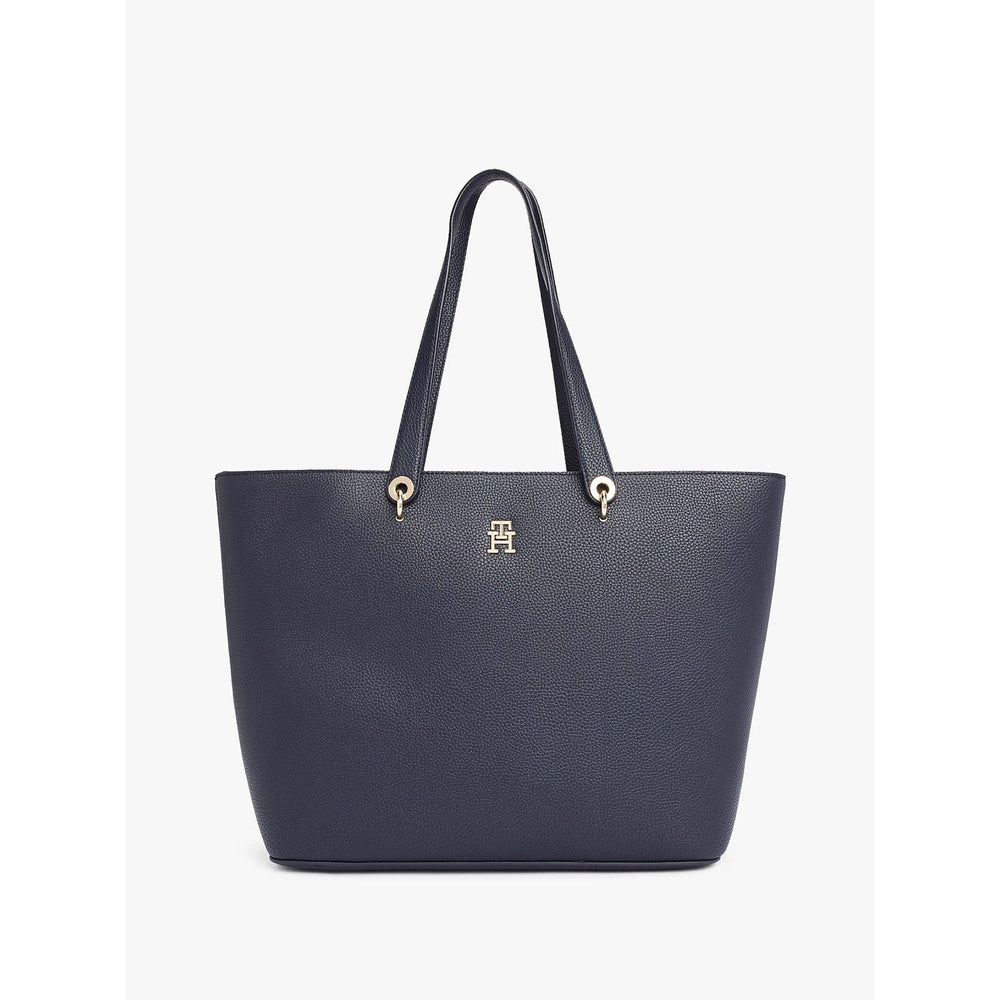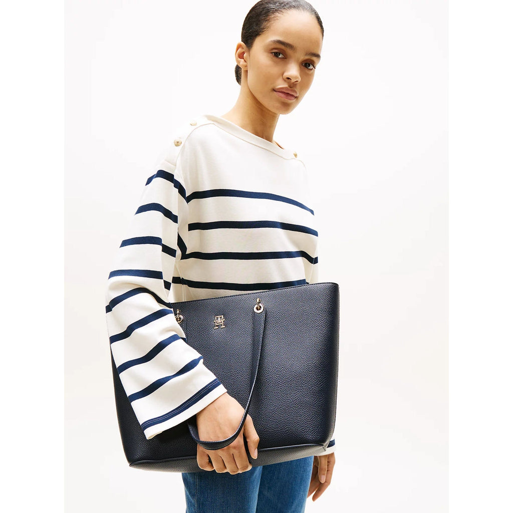 This elegant tote features a refined pebble grain texture and is complete with a TH monogram on the front.