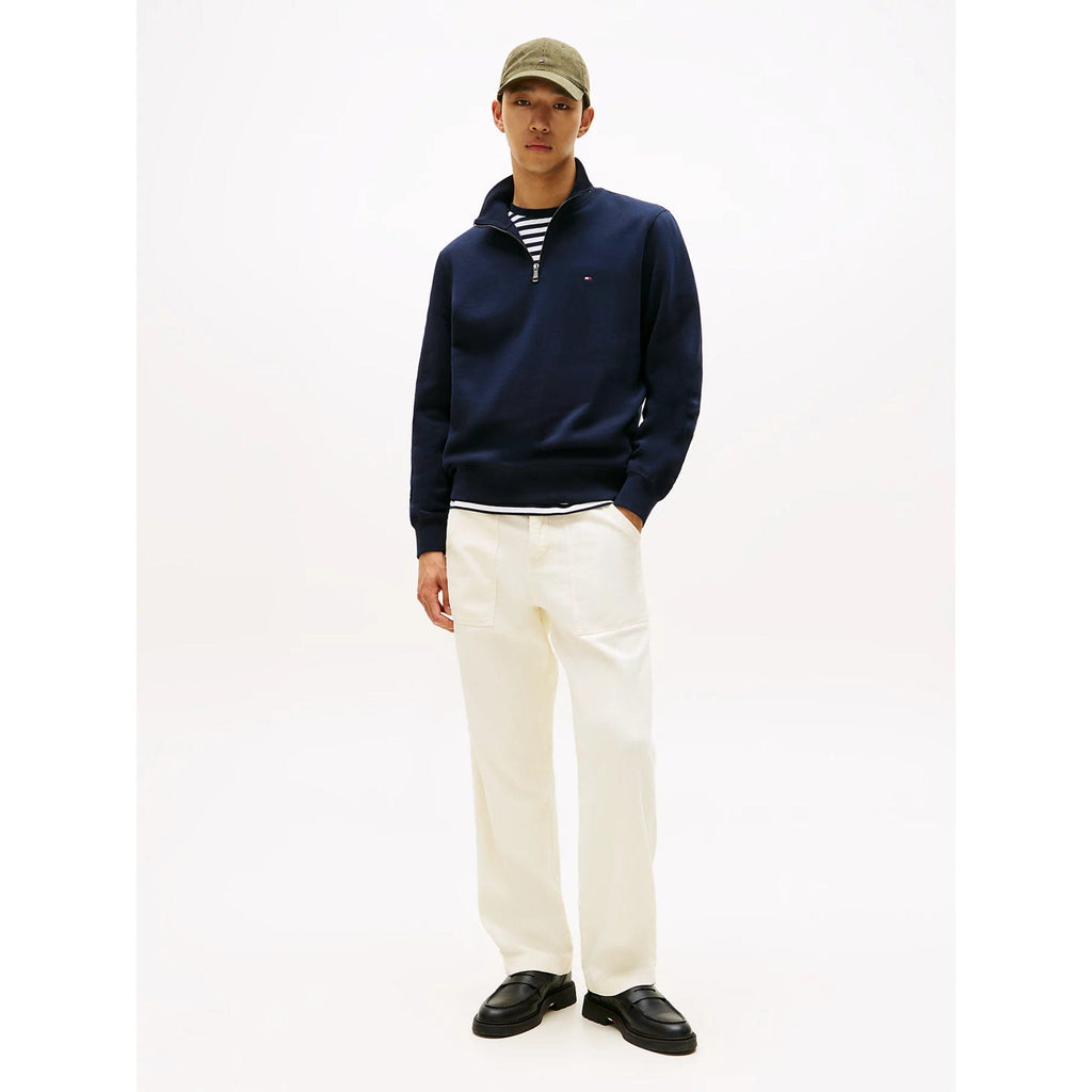 Upgrade your athleisure wear by opting for this peached fleece jumper in a sporty half-zip design, complete with discreet flag detail.