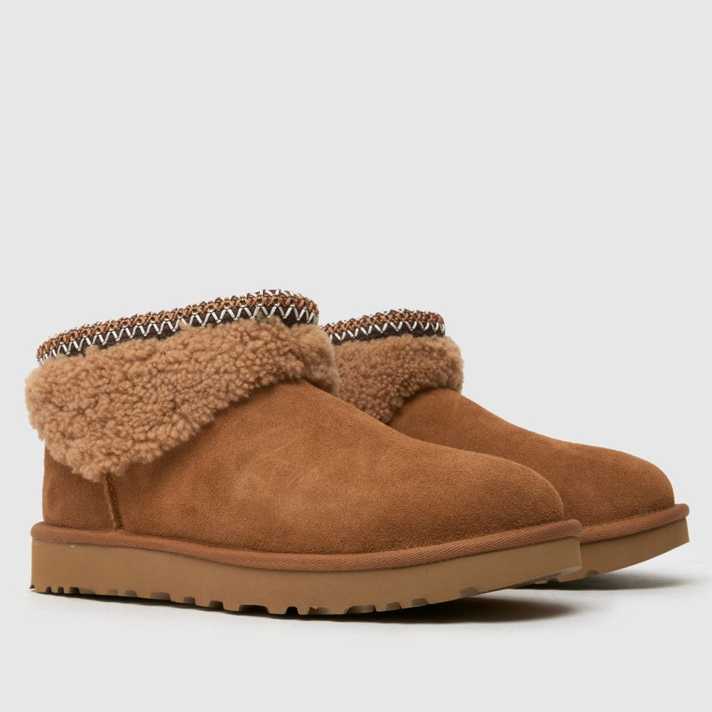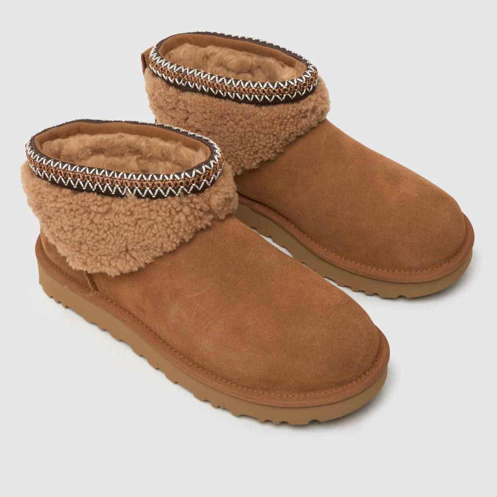 A textured take on our icon, the Classic Ultra Mini Maxi Curly rediscovers cosiness with a curly sheepskin upper. Trimmed with our Heritage UGGbraid and built upon our Classic outsole, these boots promise the same cocoon-like supreme comfort you love from UGG.