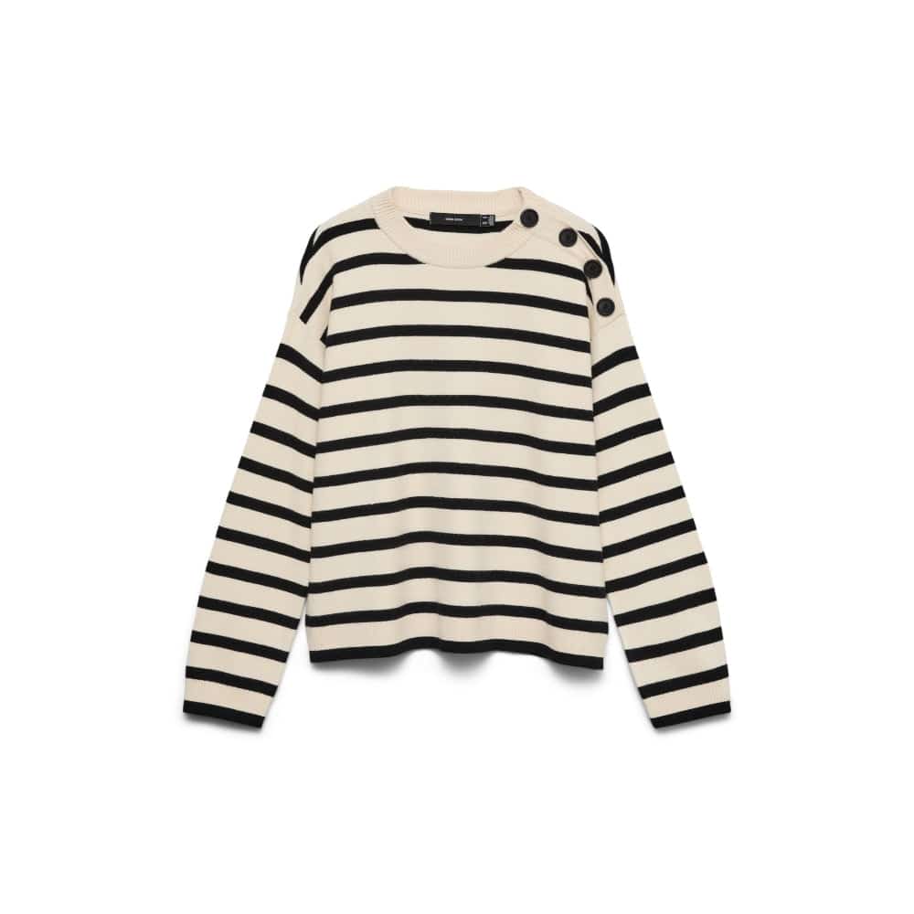 Introducing your new go-to top layer: the Vero Moda Vmsaba Pullover! Made with a minimum of 50% Livaeco by Birla Cellulose™, this knitted pullover is both stylish and comfortable. Featuring a round neck, long sleeves, ribbed cuffs, and button detail, it's the perfect addition to any wardrobe. Stay warm and stylish in the most perfect way possible!