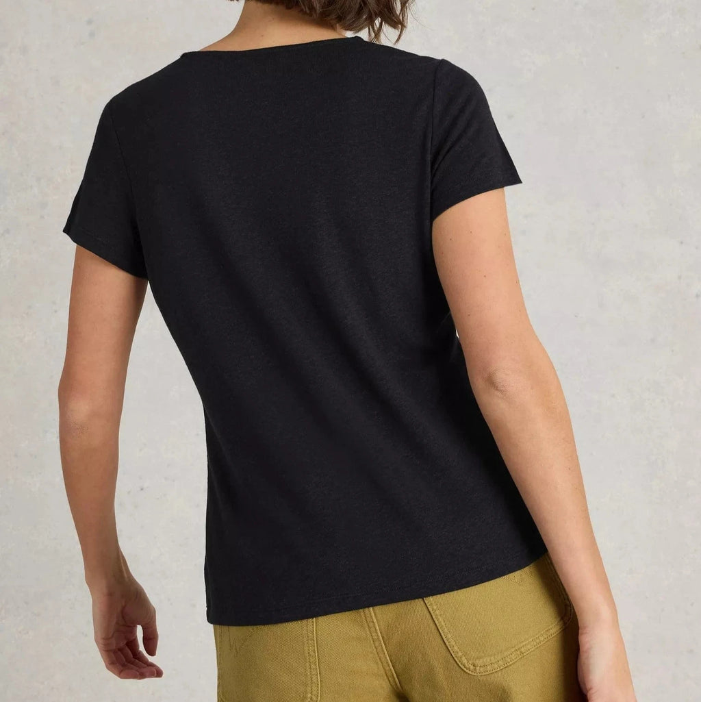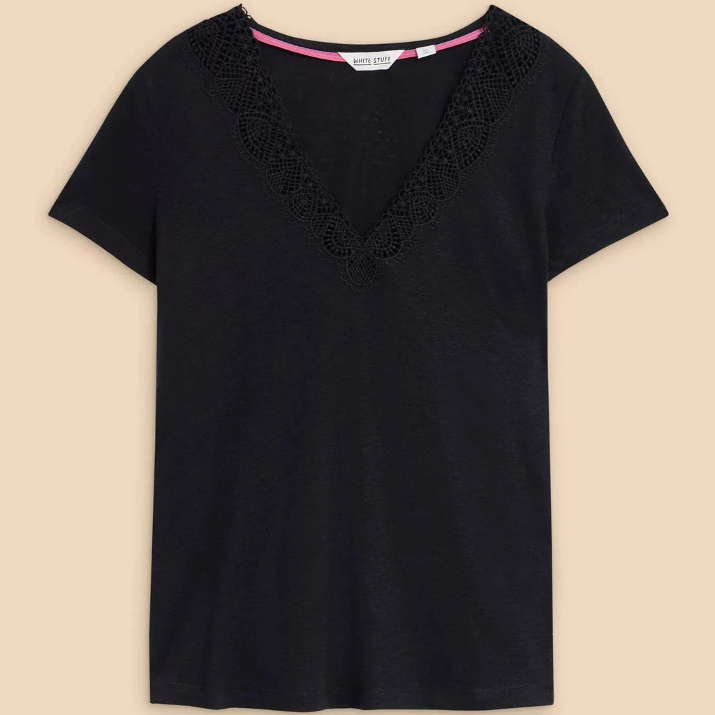 There’s nothing strait-laced about this tee. But there is a lace trim along the neckline. (In lace you were wondering.)